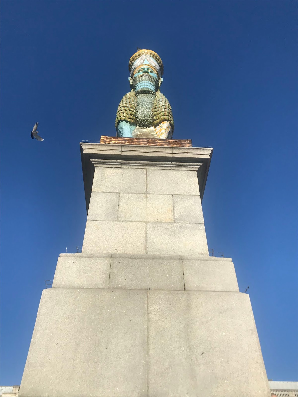 En el caso presente, la estatua, realizada según los mismos criterios antes enunciados, reproduce a tamaño natural una gran estatua neo-asiria: un Lammasu, o divinidad protectora de los accesos y los espacios interiores de palacios neo-asirios, destruido por el Estado Islámico, en Nimrud, cabe Kirkuk, en Iraq, en 2015.